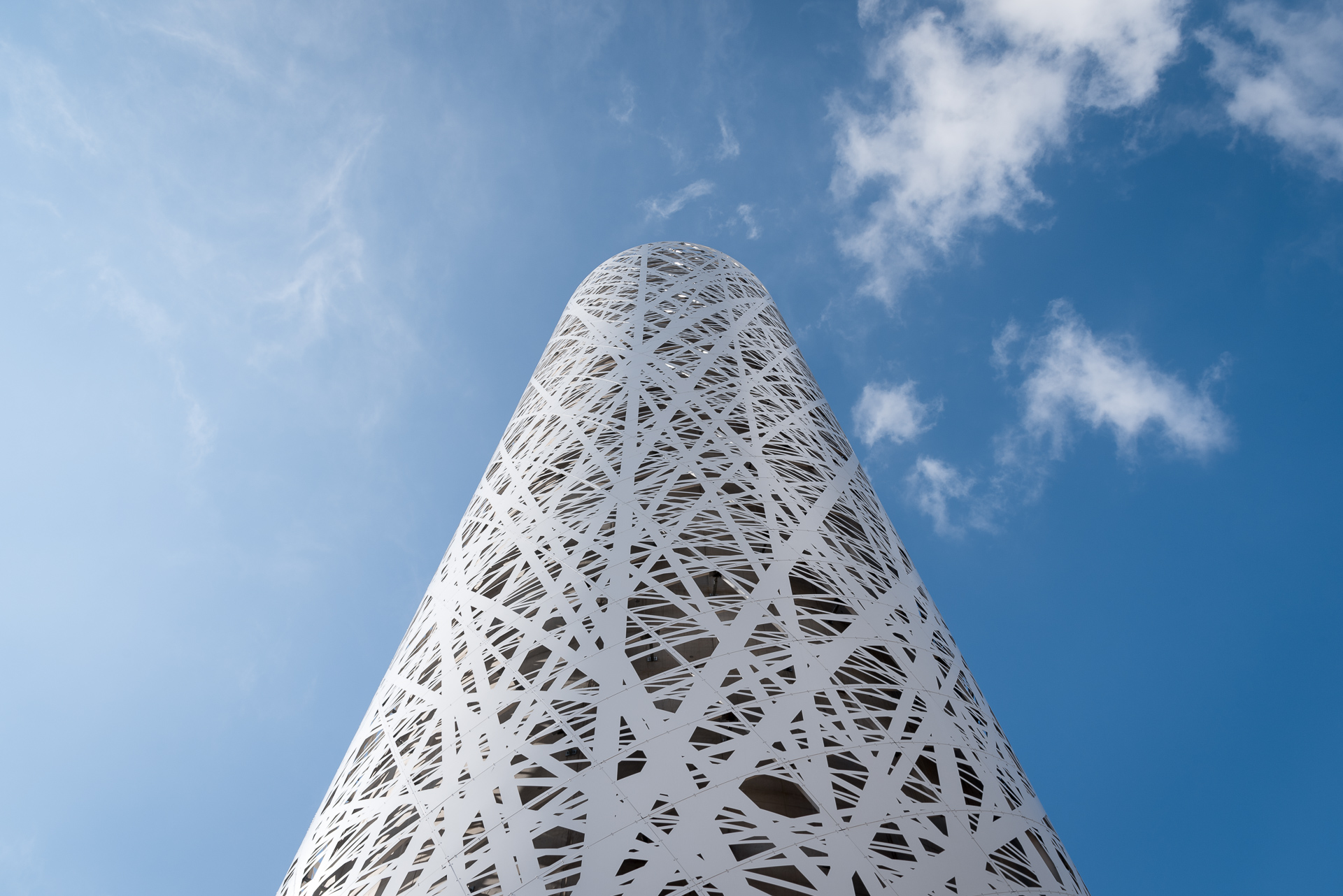 Une photo du bardage du château d’eau du Ban de Gasperich au Luxembourg